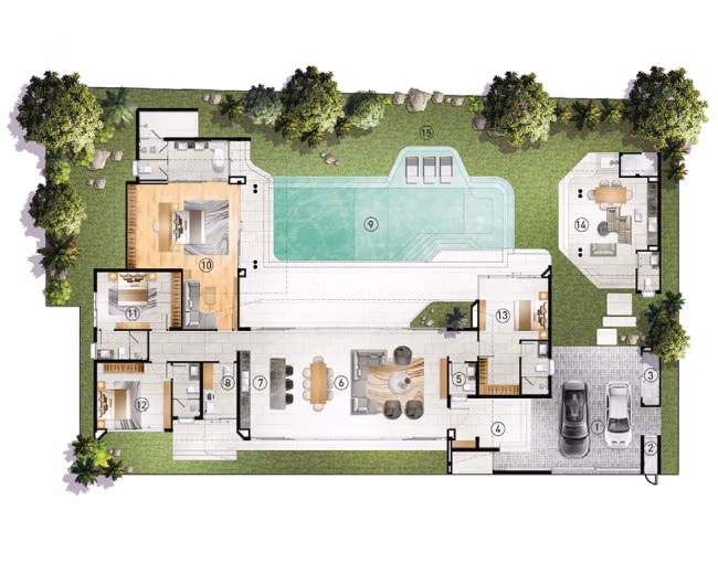 This exclusive collection of modern luxury villas is designed for elevated tropical living, combining striking contemporary architecture with generous proportions and refined finishes. Expansive, light-filled interiors are enhanced by soaring ceilings and floor-to-ceiling glass, creating a seamless connection between indoor and outdoor living.