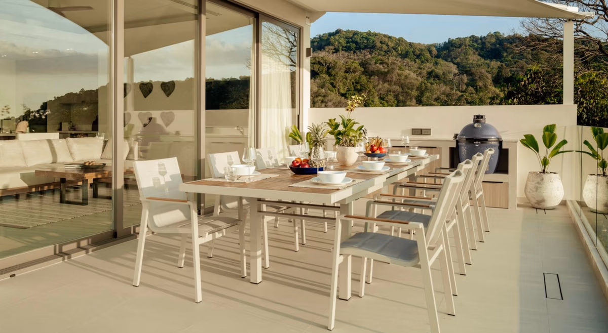 refined yet relaxed atmosphere. Expansive terraces and floor-to-ceiling glass flood the interiors